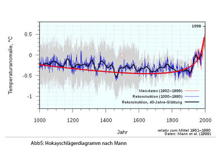Von Seiten des IPCC wird die sogenannte Hockey-Kurve vertreten (Abb.5).