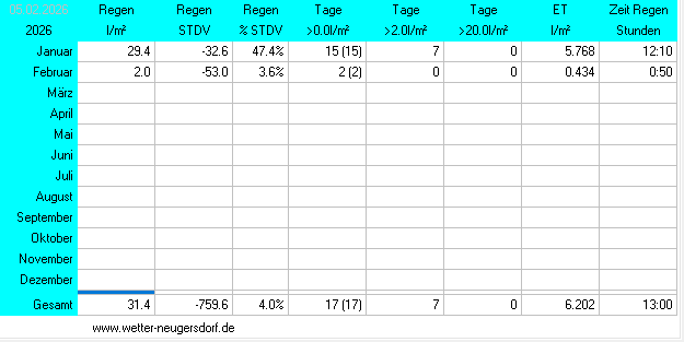 Niederschlagsstatistik